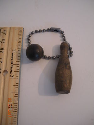 Title (ebay affiliate link): Vintage bowling ball & bowling pin wooden keychain