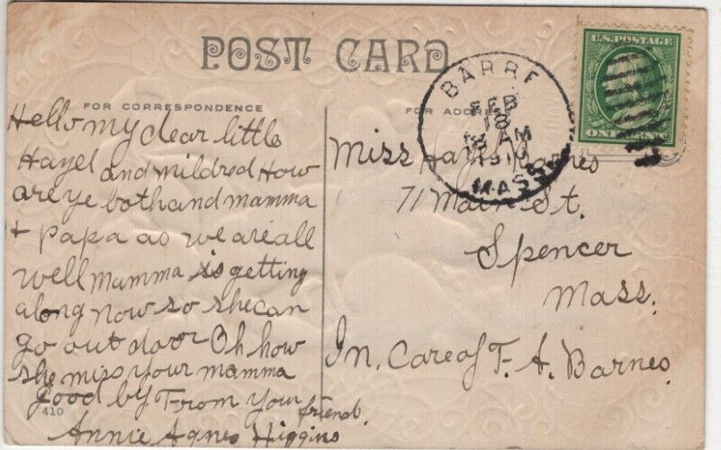 Title (ebay affiliate link): ANTIQUE EMBOSSED VALENTINE Postcard CUPID HOLDING PINK RIBBON HEARTS