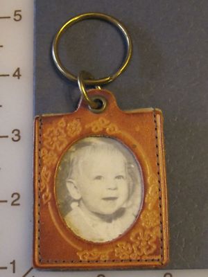 Title (ebay affiliate link): Tooled Leather Picture Frame Key Chain Ring, Vintage?