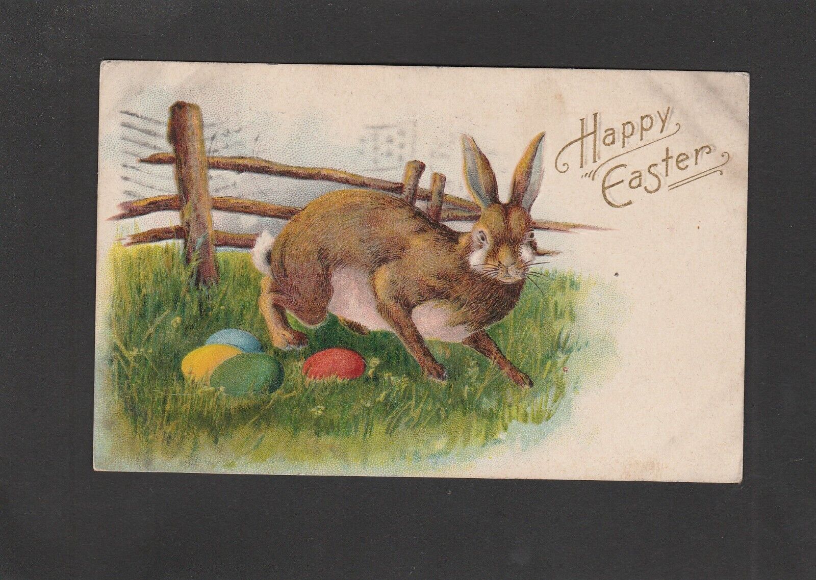Title (ebay affiliate link): Easter Rabbit Colored Eggs Along Fence Line Germany Vintage Embossed Postcard