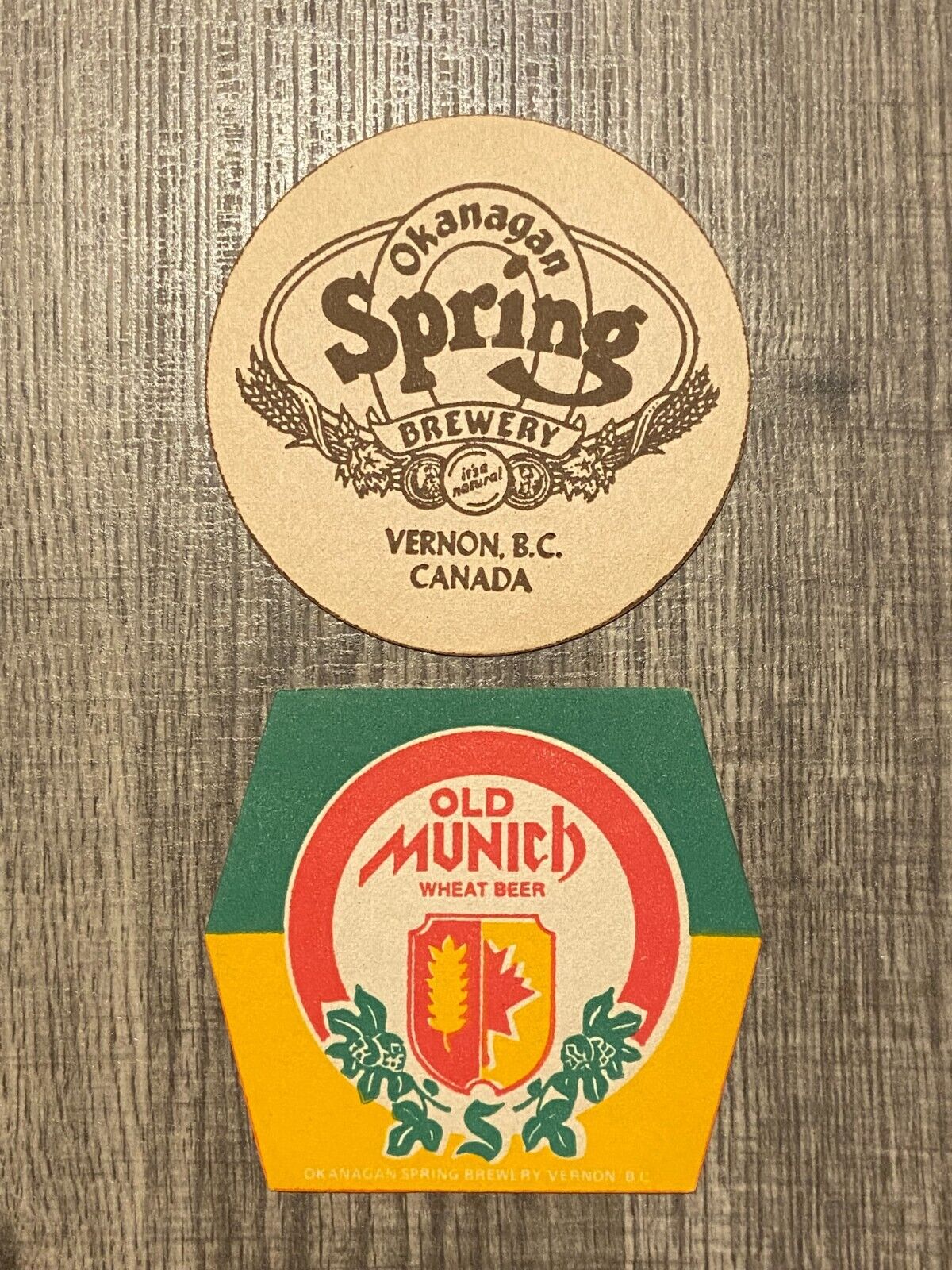 Title (ebay affiliate link): 2 OKANAGAN SPRING BREWERY OLD MUNICH BEER COASTERS VERNON B.C. CANADA