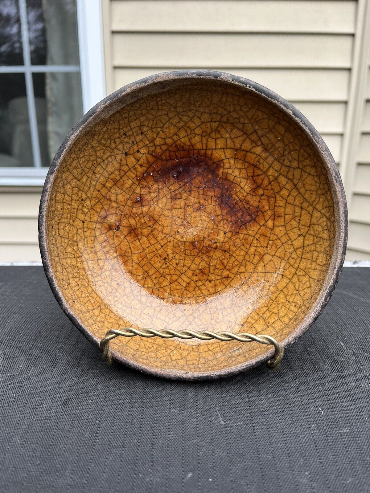 Small Vintage Pennsylvania Redware Glazed Pottery 634 Pie / Plate Primitive
