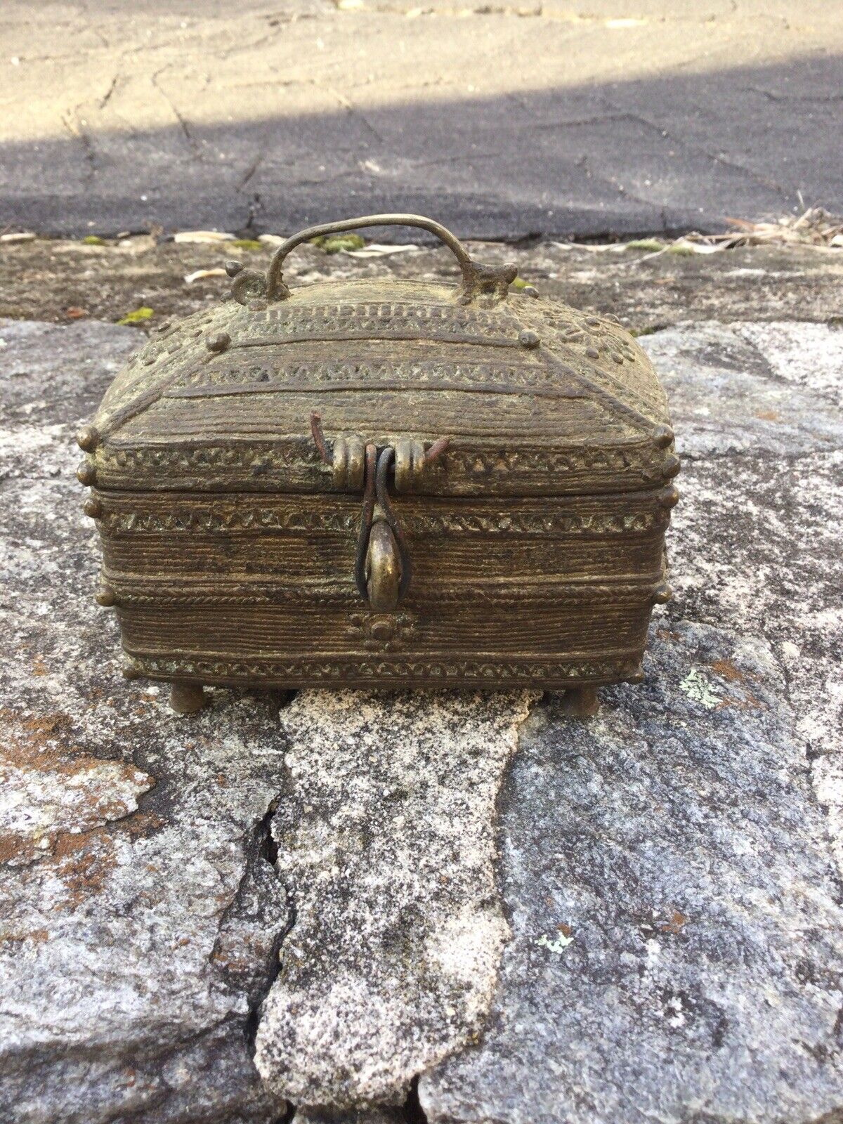 Antique Bronze African Benin Valuables Footed Chest no reserve