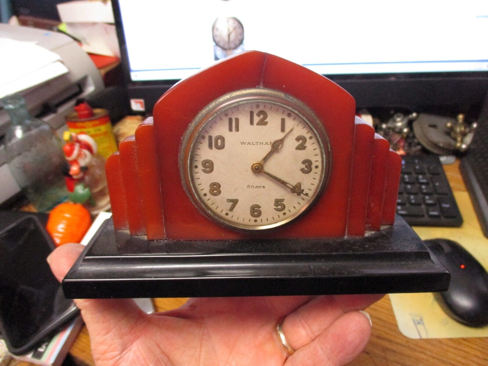 Title (ebay affiliate link): ANTIQUE WATHAM Art Deco Skyscraper BAKELITE CATLIN SHELF Clock