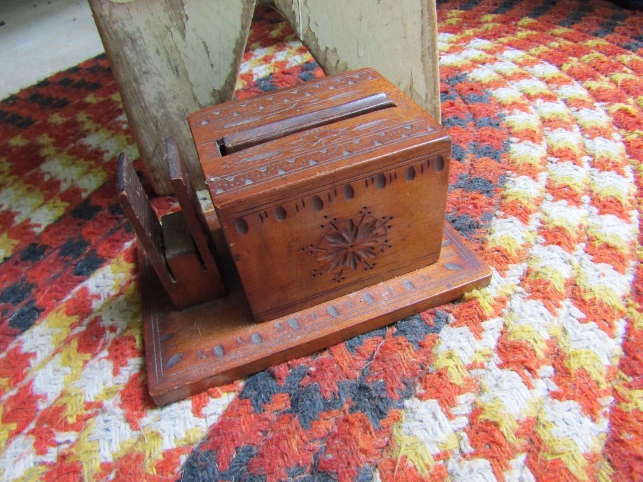 Lovely Old Primitive Vintage or Antique Carved Wood Cigarette Match Box Holder