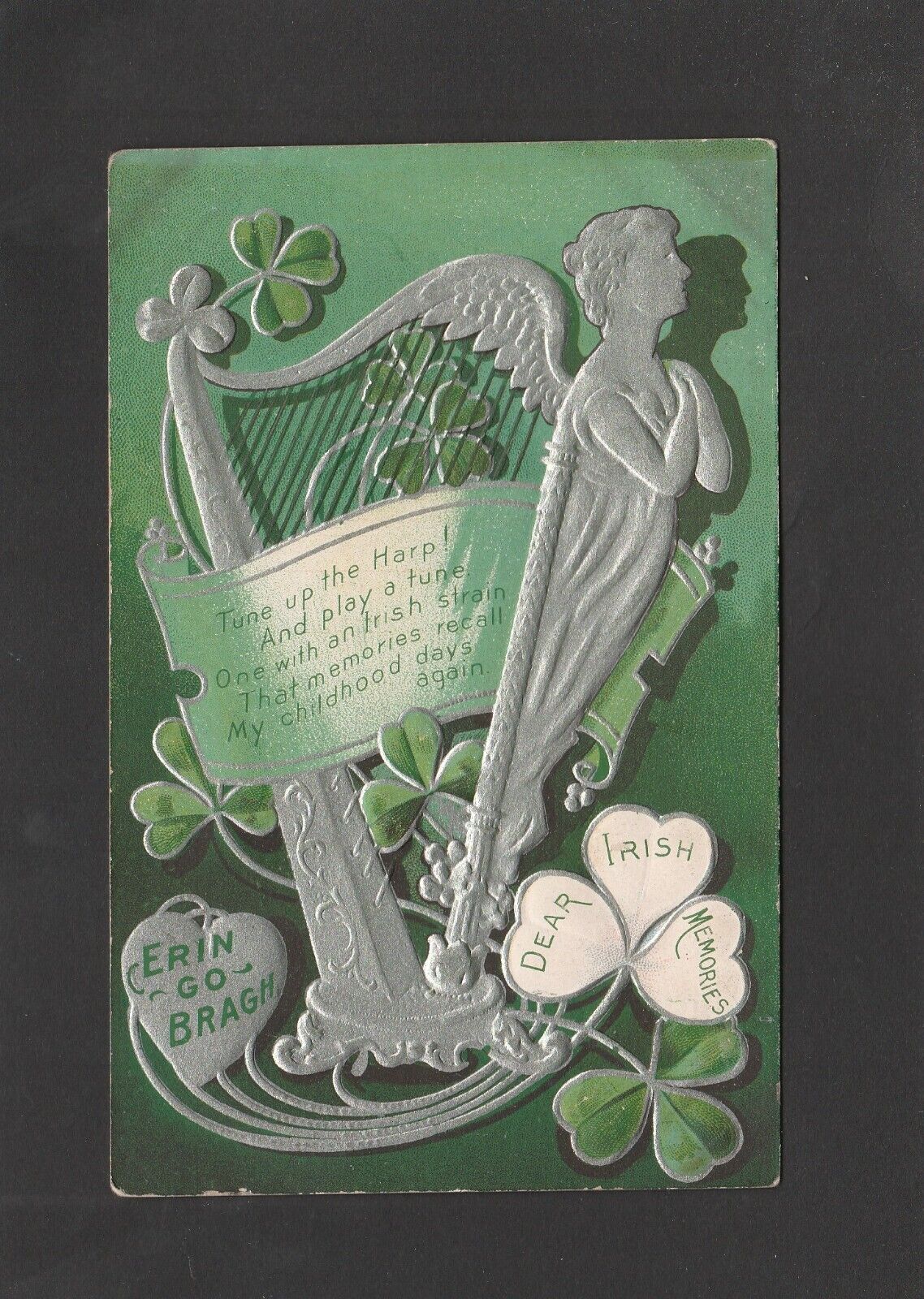 Irish Erin Go Bragh St Patricks Day Silver Harp Vintage Embossed Postcard