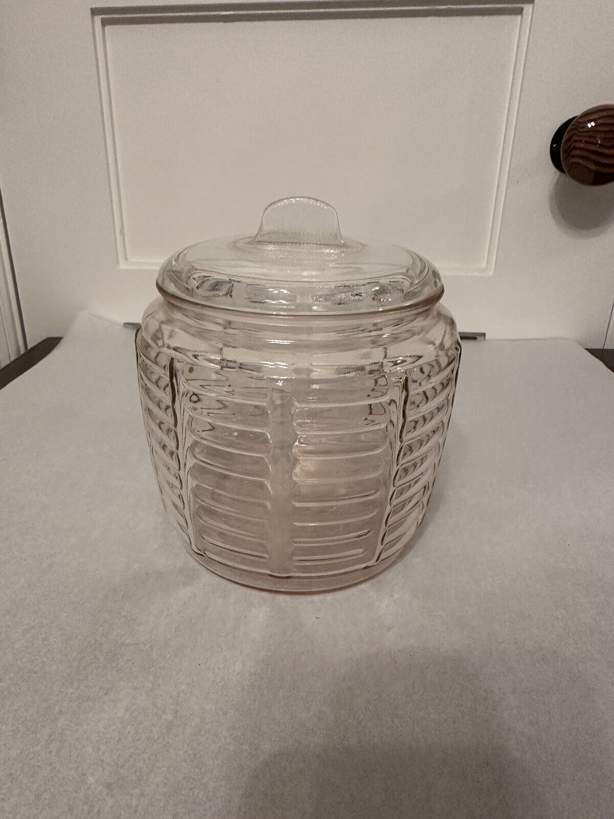 Pink Depression Glass Anchor Hocking Manhattan Beehive Cookie Biscuit Jar
