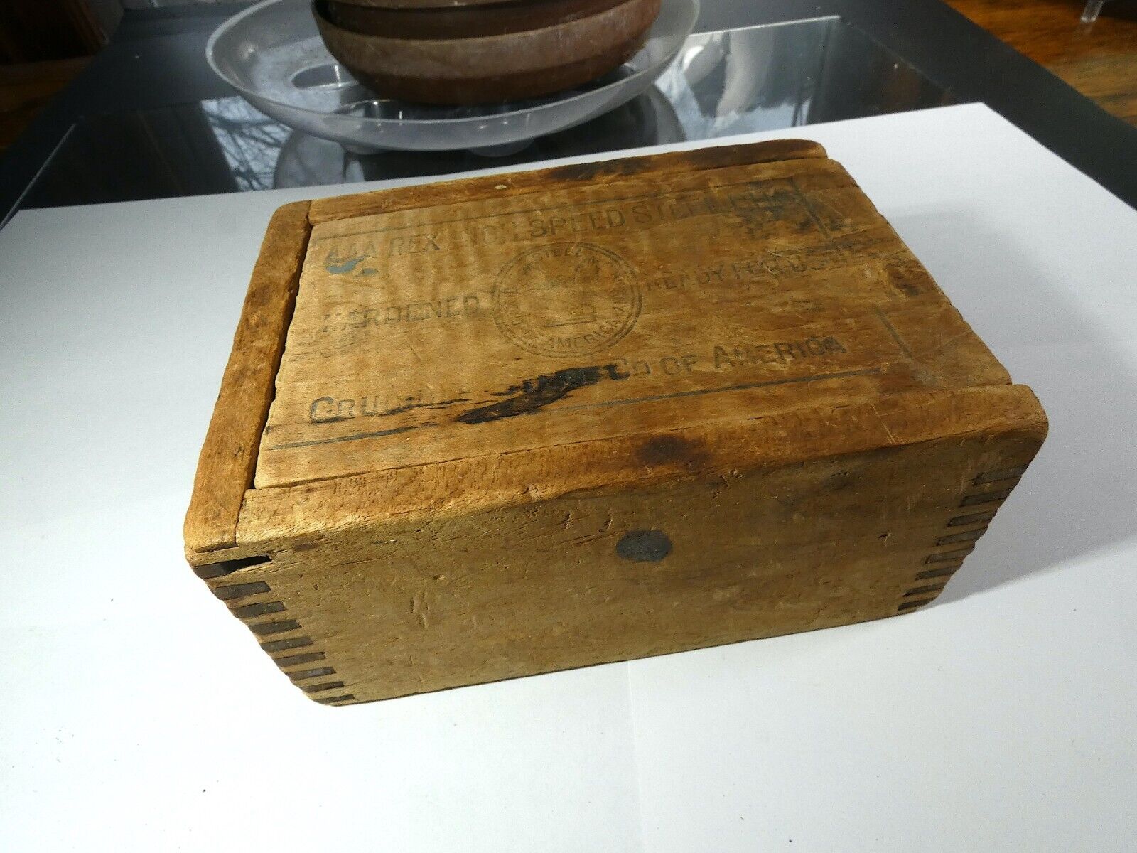 Title (ebay affiliate link): Antique Dovetailed Small Wood Box Crucible Steel Co. of America
