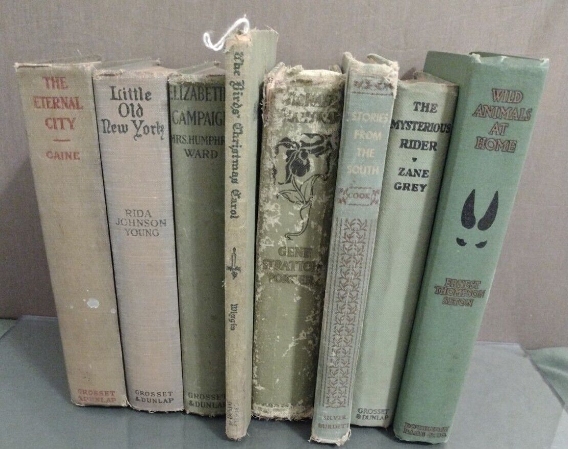 Title (ebay affiliate link): Lot Of 8 Light Green Vintage Antique Books For Decor Collection