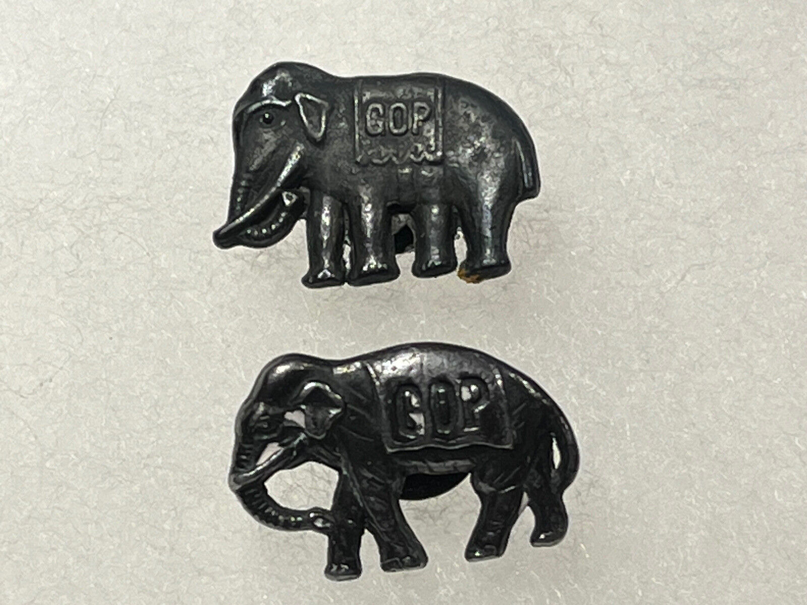 Title (ebay affiliate link): 2 antique metal GOP GRAND OLD PARTY REPUBLICAN Elephant collar stud lapel pin