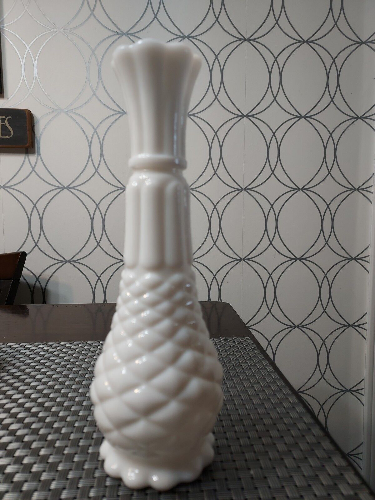 Title (ebay affiliate link): Set of 2 Vintage Anchor Hocking Milk Glass Bud Vase 9 Inches Tall