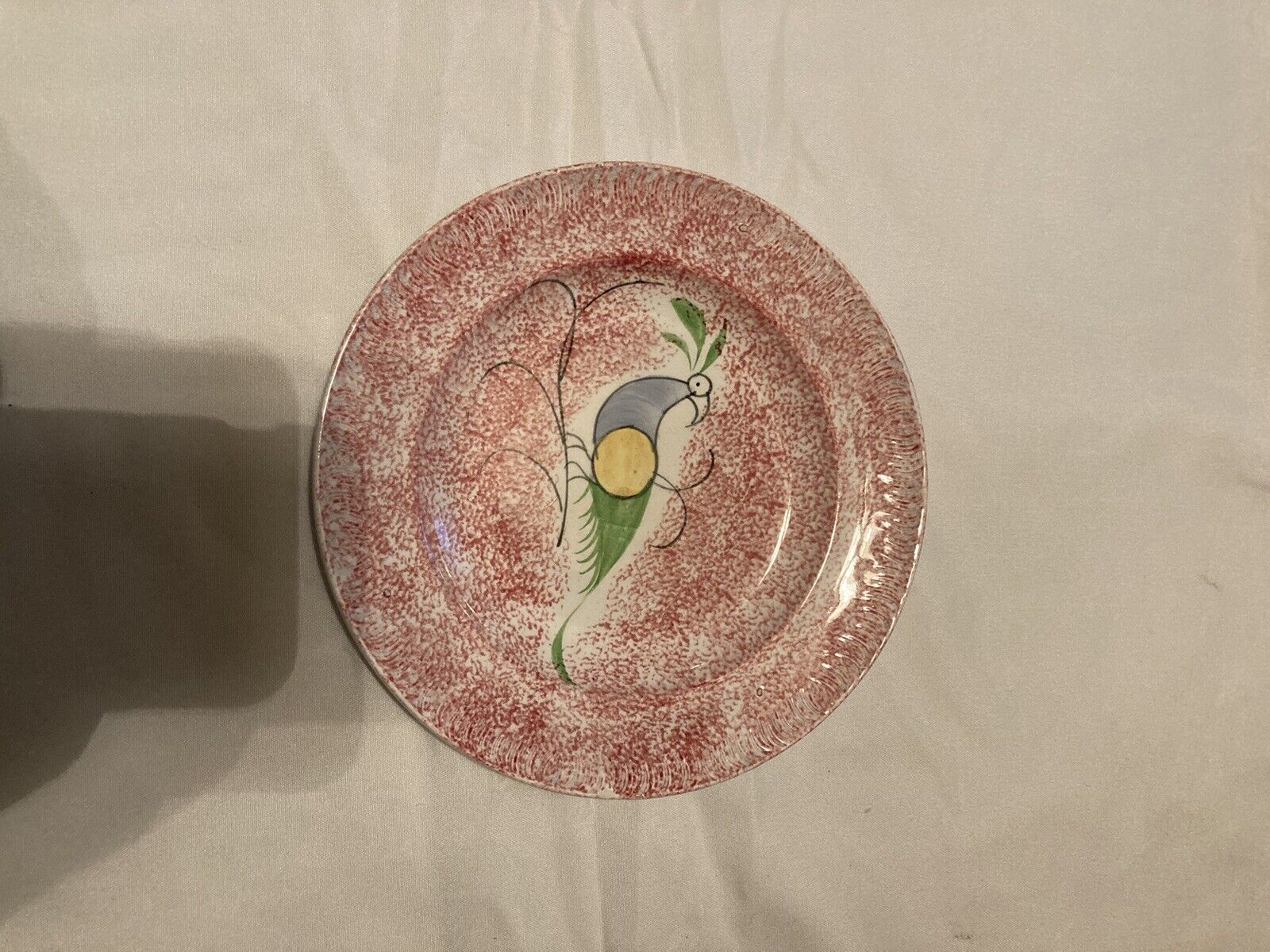 RED PEAFOWL PEACOCK SPATTERWARE SPONGEWARE PLATE