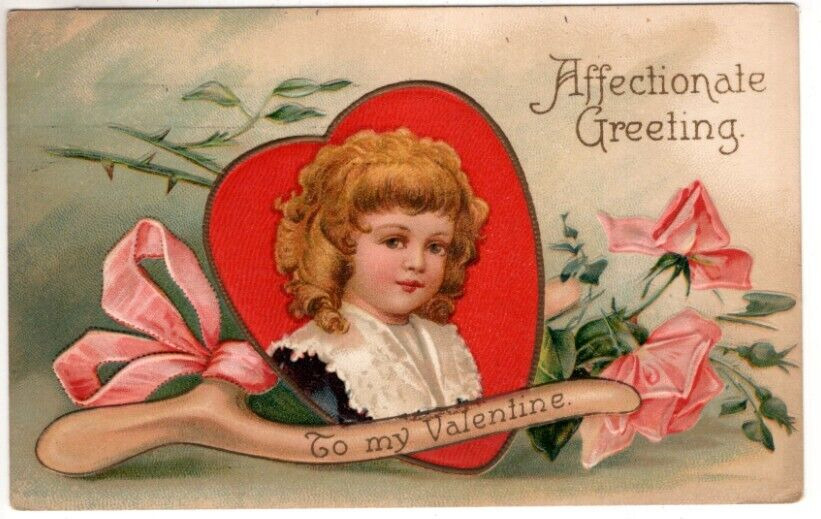 Title (ebay affiliate link): 1909 ANTIQUE EMBOSSED VALENTINE Postcard YOUNG GIRL IN HEART WISHBONE ROSES
