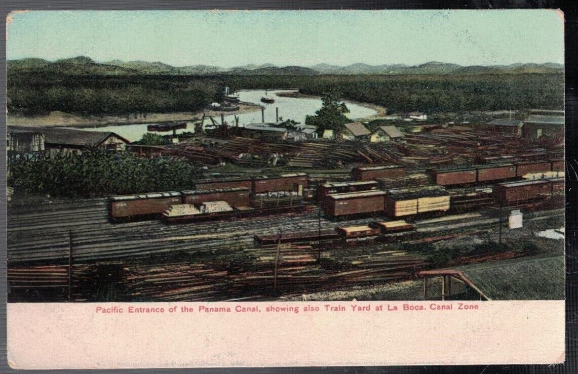 ANTIQUE 1905 UDB PACIFIC ENTRANCE PANAMA CANAL TRAIN YARD AT LA BOCA POSTCARD