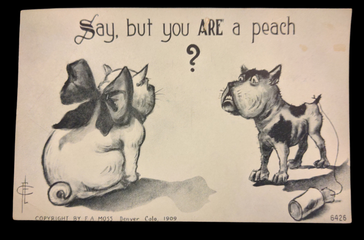 Title (ebay affiliate link): Antique 1909 FA Moss Say But You Are A Peach Dog Postcard