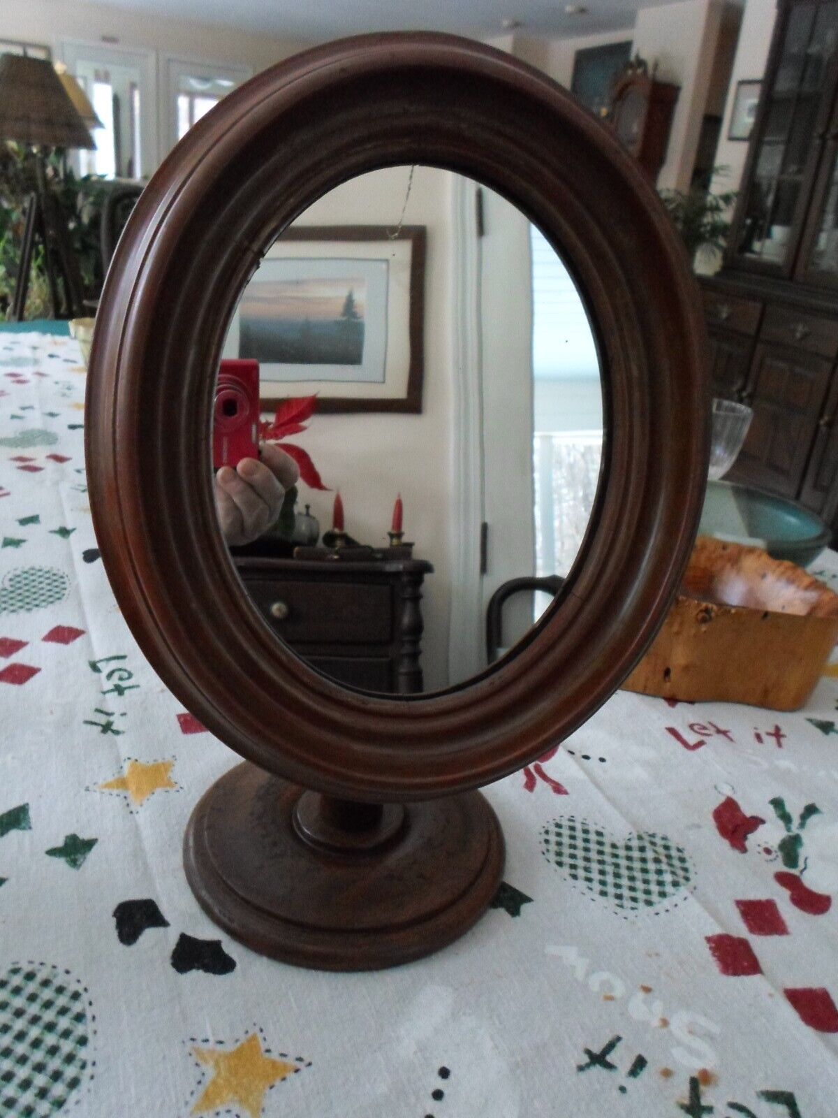 ANTIQUE WALNUT OVAL TABLETOP TOILET MIRROR 1874