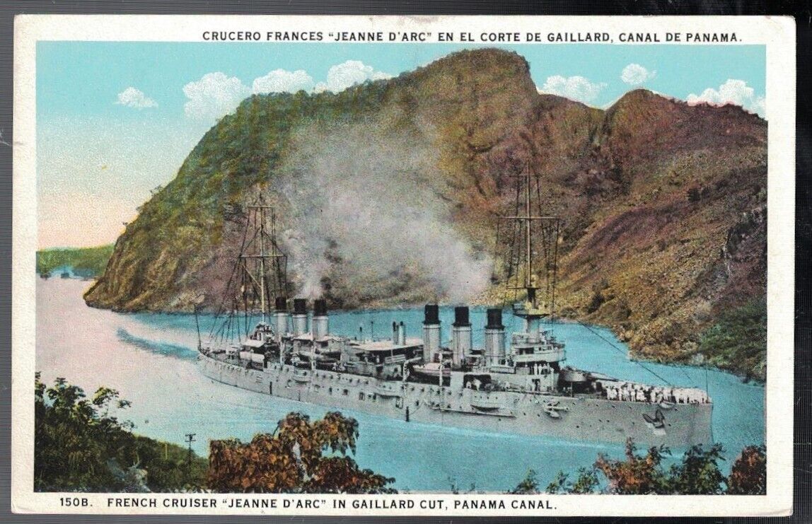 ANTIQUE 19151920 FRENCH CRUSIER SHIP JEANNE D ARC PANAMA CANAL POSTCARD
