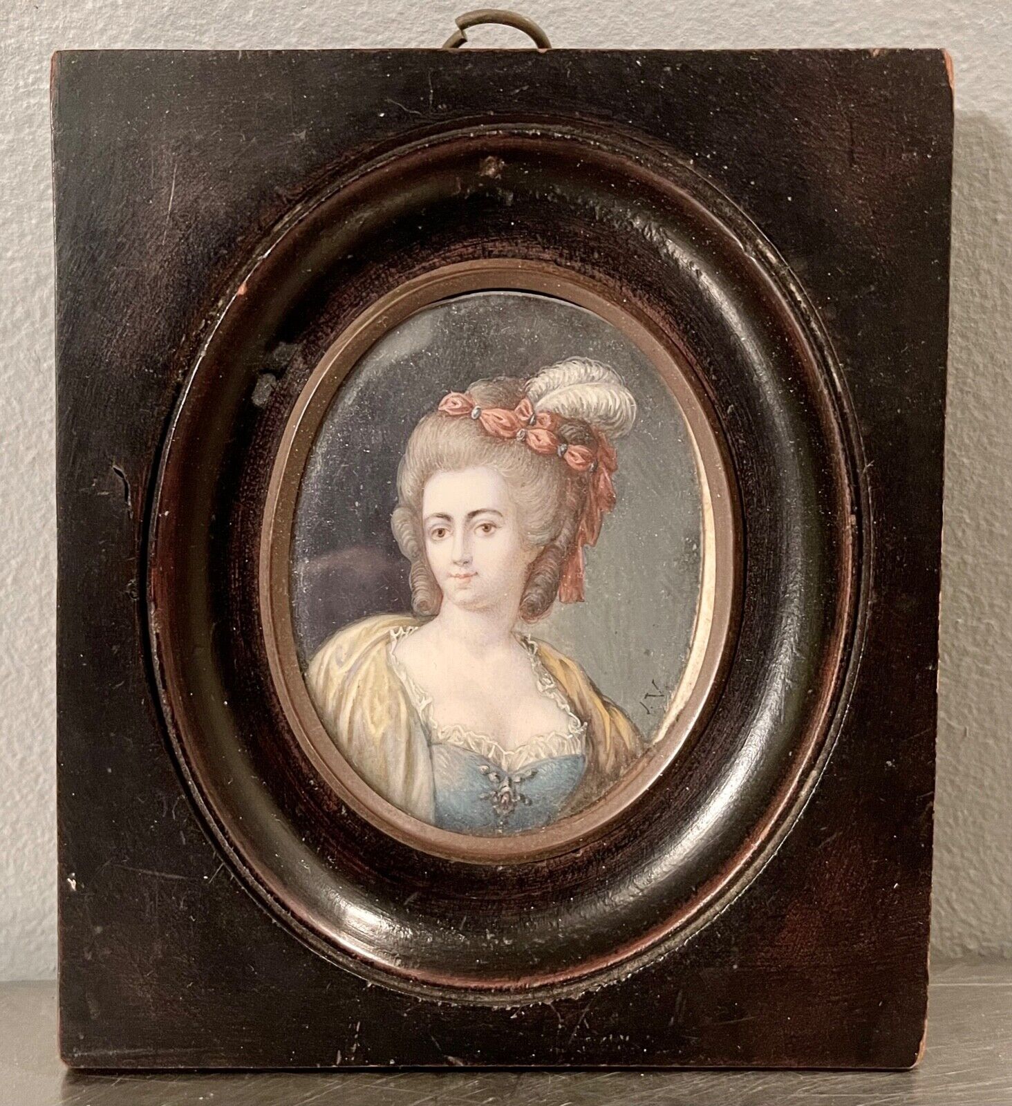 Antique Vintage Hand Painted Miniature Portrait Signed