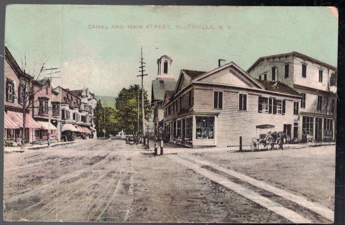 ANTIQUE 1908 CANAL MAIN STREET ELLENVILLE NEW YORK POSTCARD