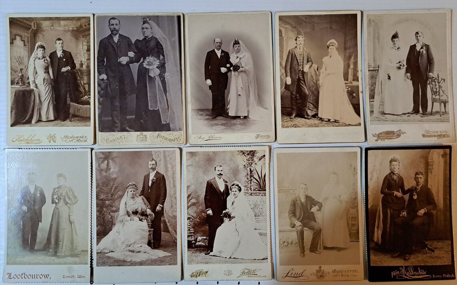 Late 1800s Antique 4x6 Cabinet Card Portrait Photographs LOT of 10 WEDDINGS