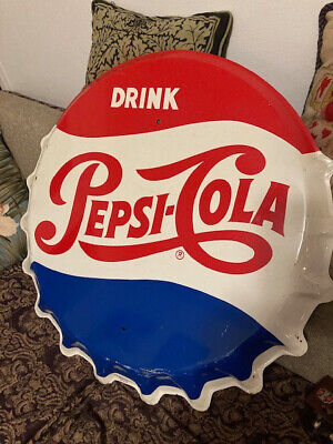 Title (ebay affiliate link): Large Vintage 34Bottle Cap34 Pepsi sign