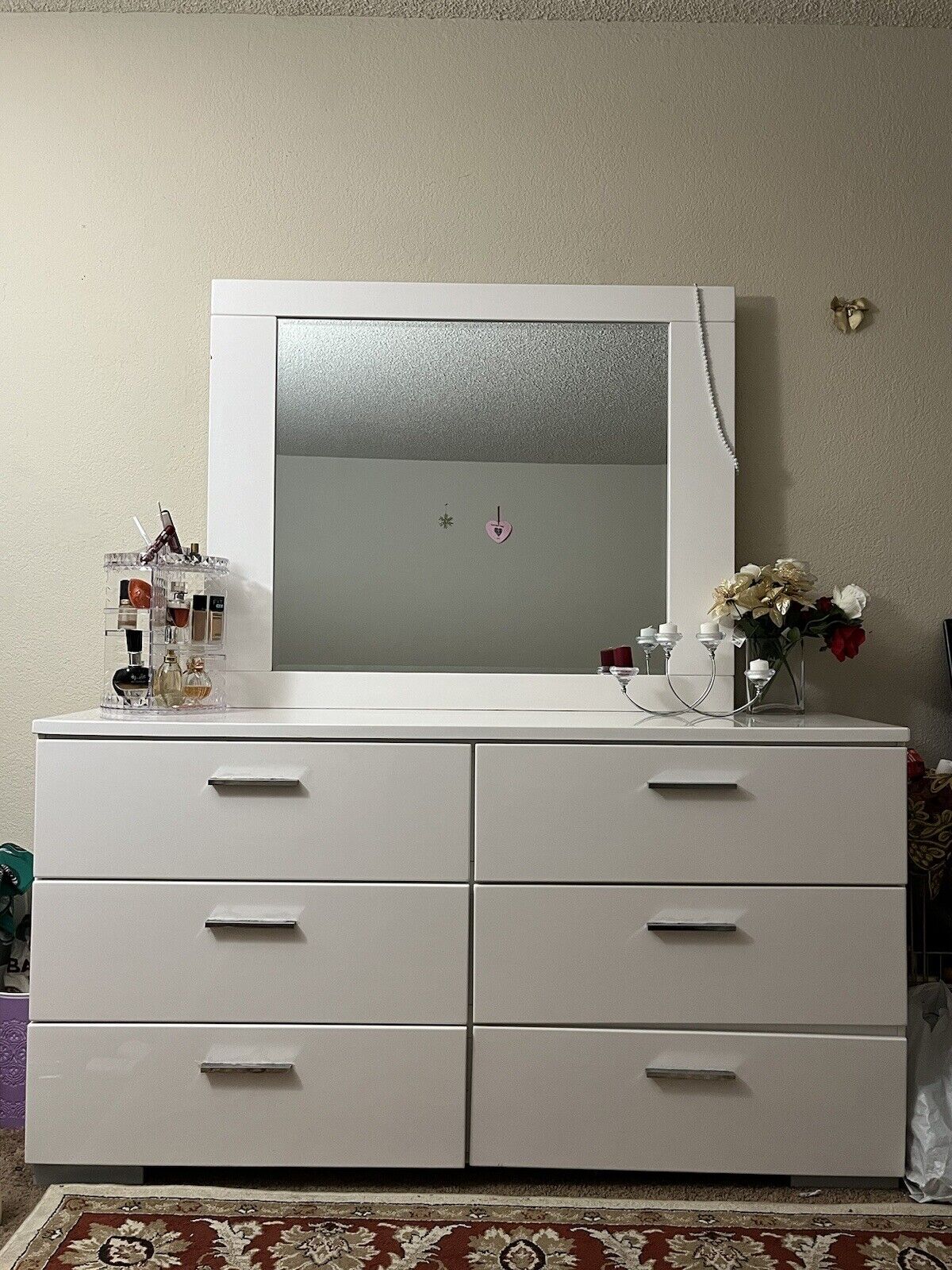 white vanity dresser with mirror