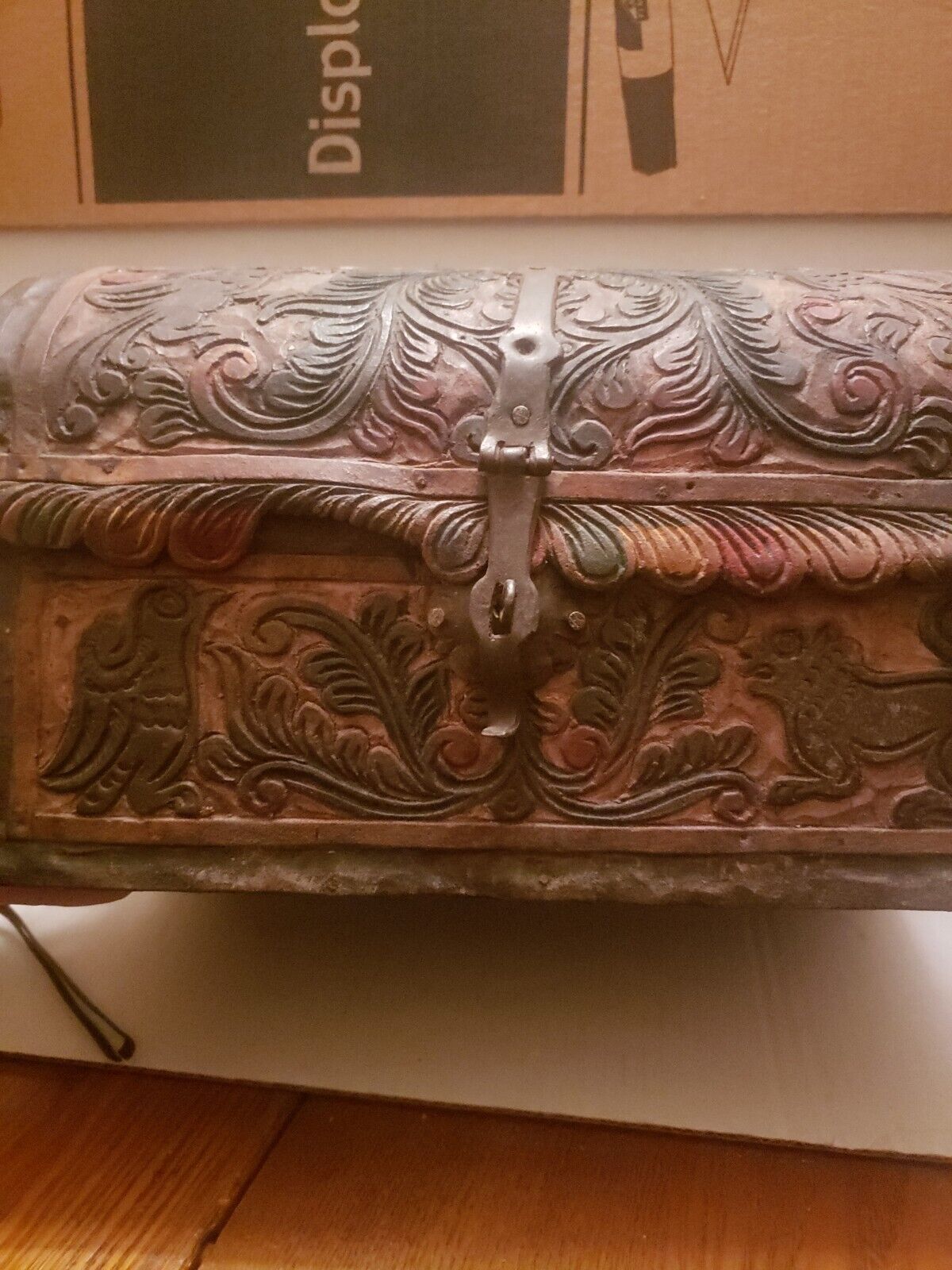 Title (ebay affiliate link): Vintage Tooled Leather Covered Dome Top Small Chest