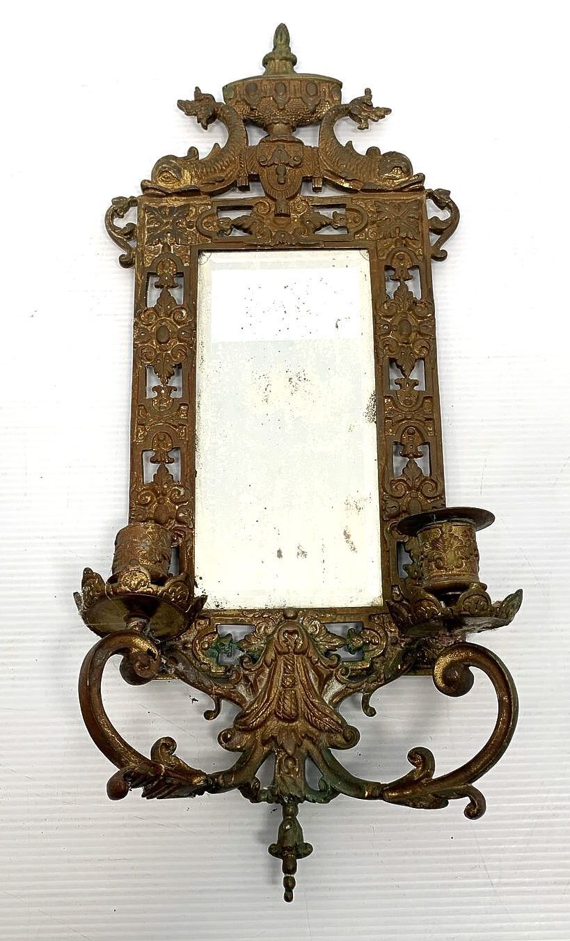 Antique Art Noveau Mirror Home Decorative Wall Hanging Golden With Candle Arms