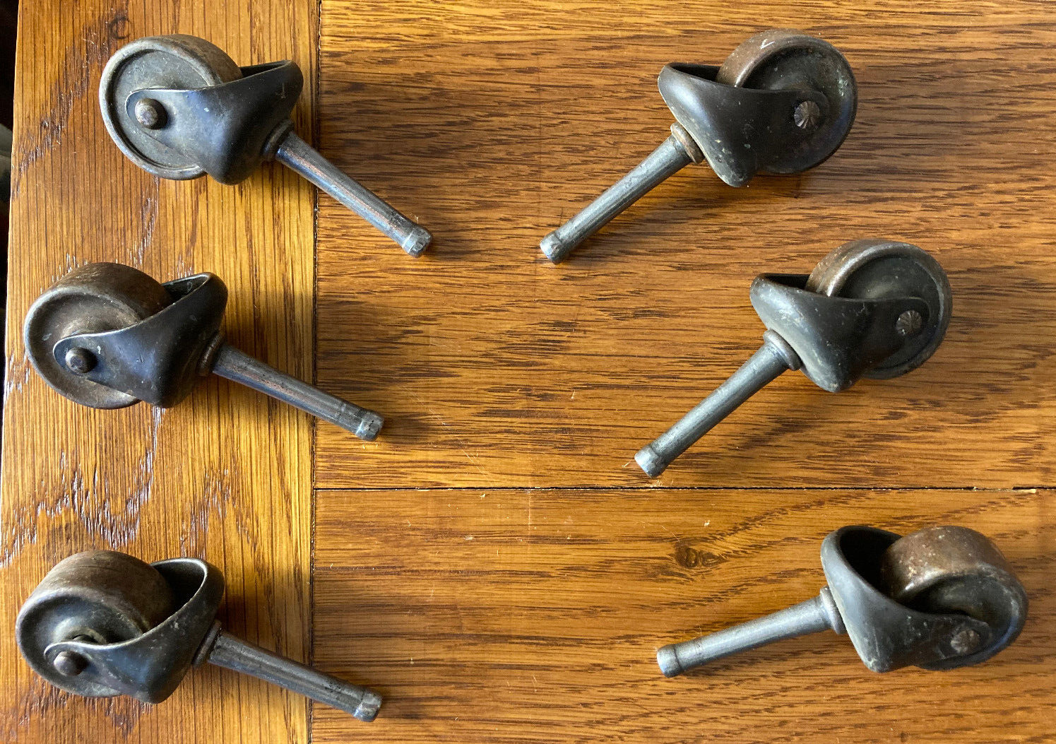Title (ebay affiliate link): 6 LARGE Antique Steel Caster Wheels Steel Pin Cabinet Dresser Chairs Table