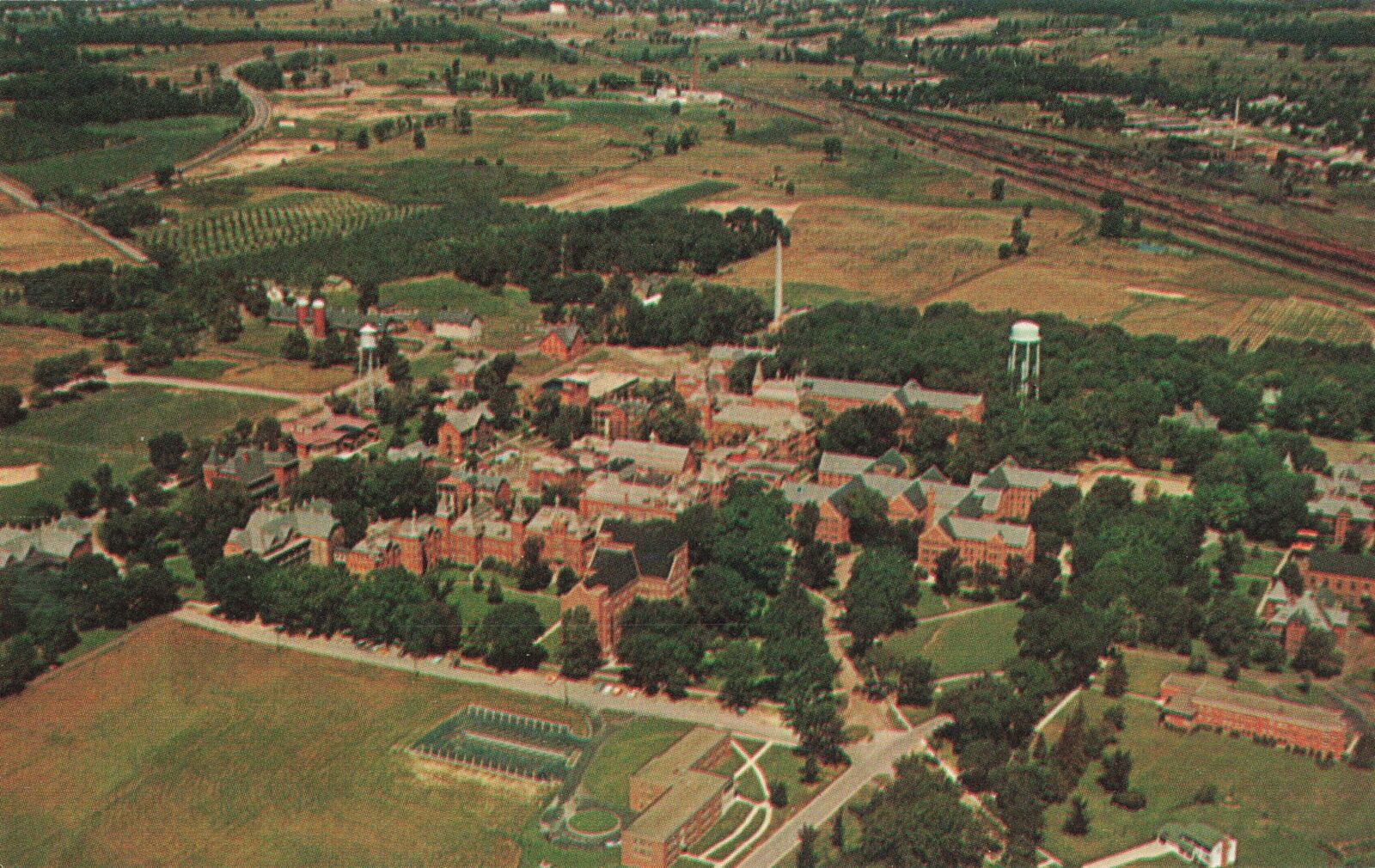 Title (ebay affiliate link): ASYLUM Pontiac MI 1950s Aerial State Hospital Home tor the Feeble Minded