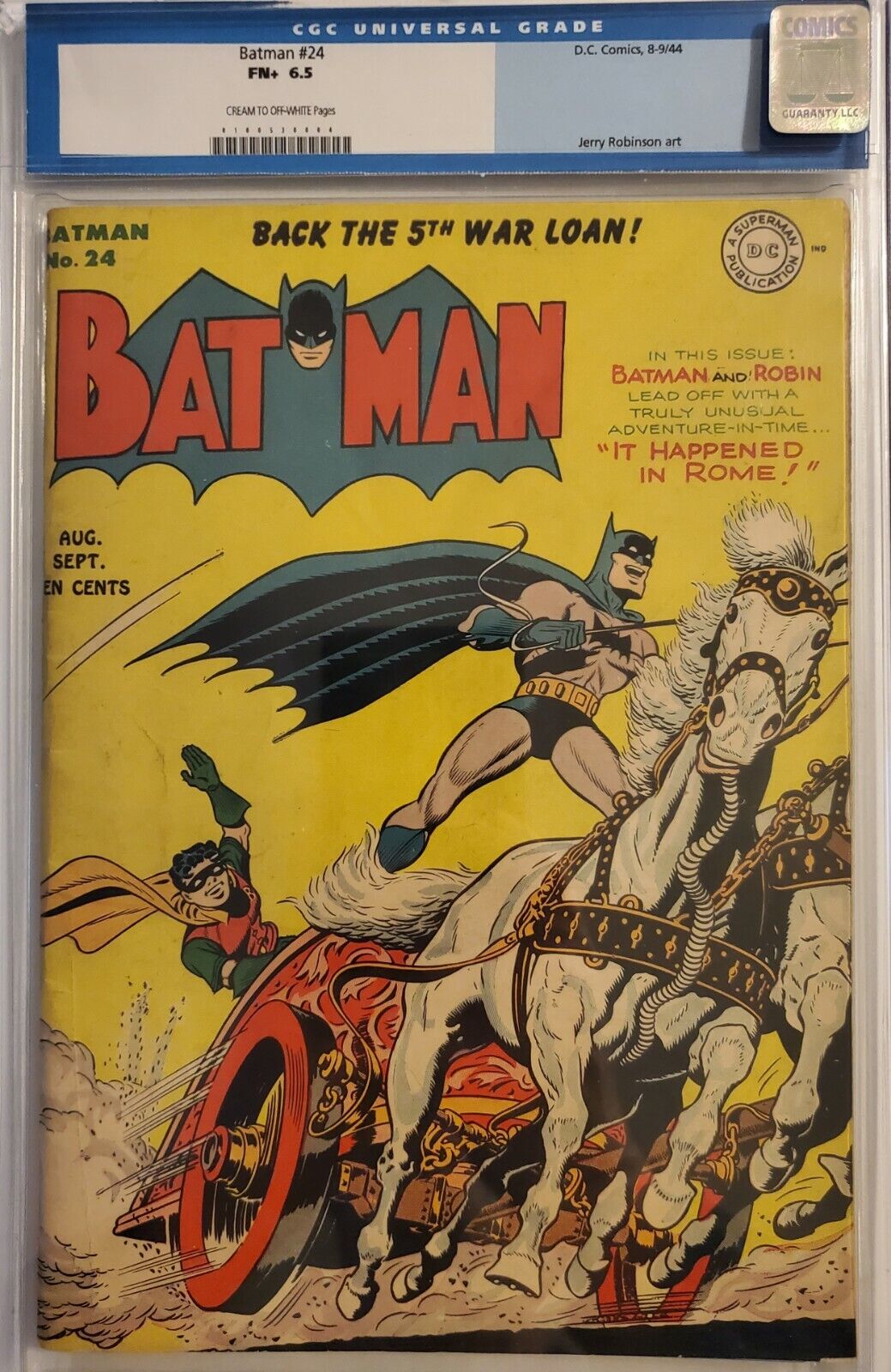 Title (ebay affiliate link): NR Batman 24 CGC 6.5 Robin 1944 Key Golden Age Fine WWII DC Comic Book Bob Kane