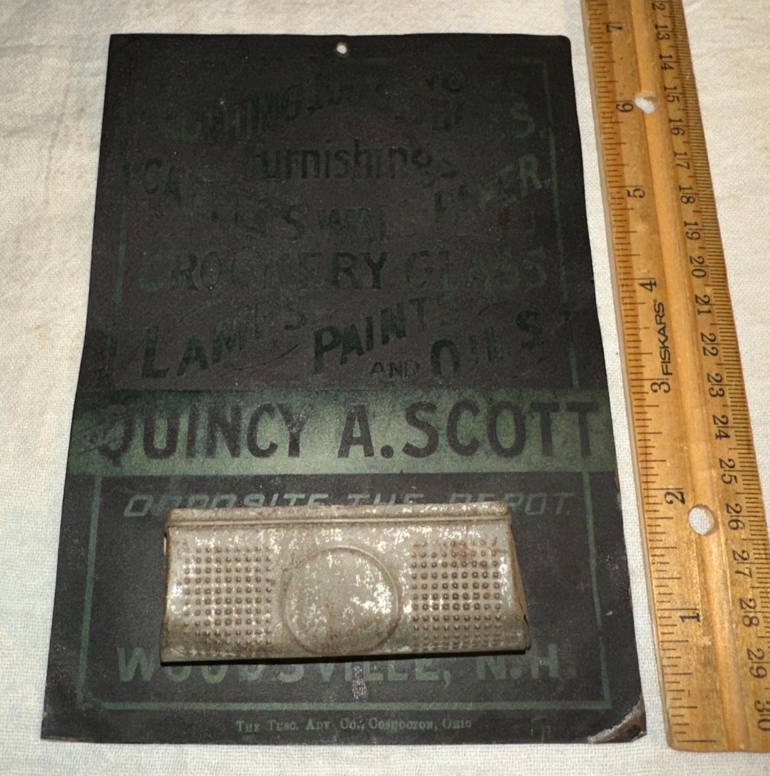 ANTIQUE WOODSVILLE NH CROCKERY TIN LITHO MATCH HOLDER STONEWARE CROCK STORE SIGN