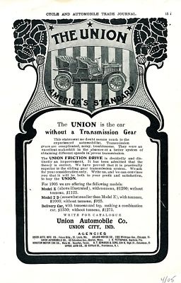 Title (ebay affiliate link): Rare 1905 UNION No Transmission CAR AD. Union City, IN