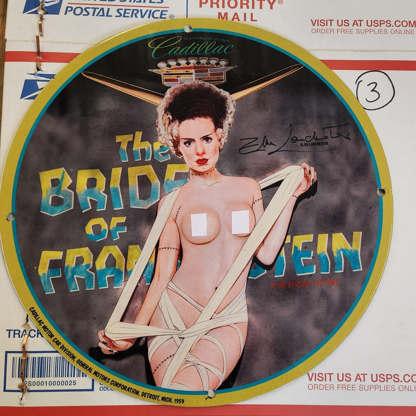 VINTAGE PORCELAIN SIGN CADILLAC THE BRIDE OF FRANKENSTEIN MOTOR CARS DIVISION