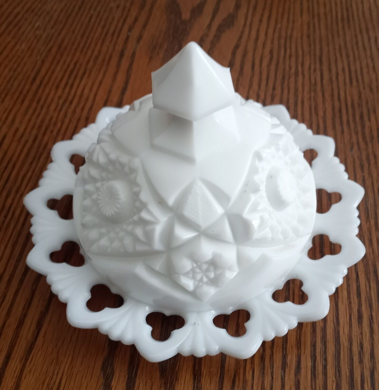 Vintage Kemple 1945 White Milk Glass Covered Butter Dish Yutek Pattern