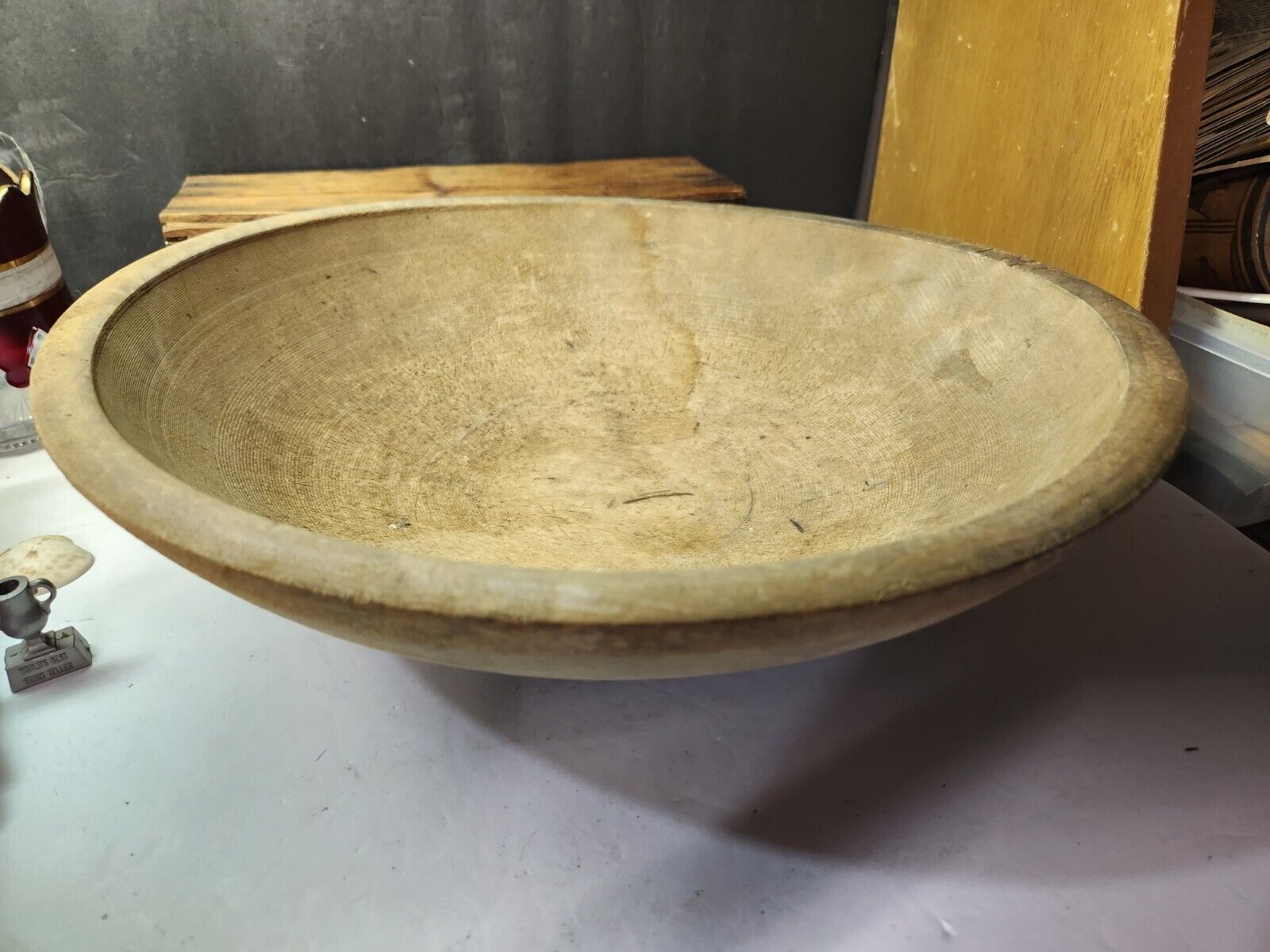 Title (ebay affiliate link): VINTAGE PRIMITIVE TURNED WOODEN BUTTER DOUGH MIXING BOWL