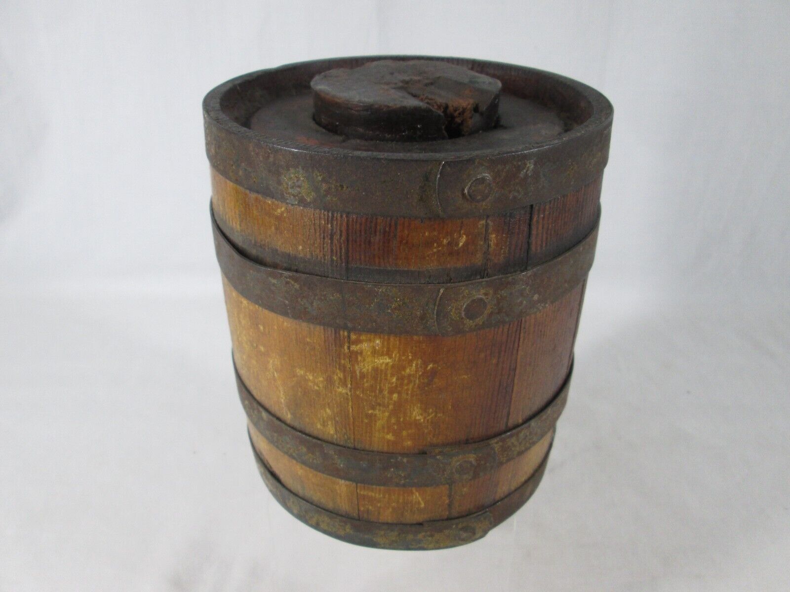 Title (ebay affiliate link): ANTIQUE PRIMITIVE SMALL SIZE WOOD KEG WITH METAL BANDS 634 TALL