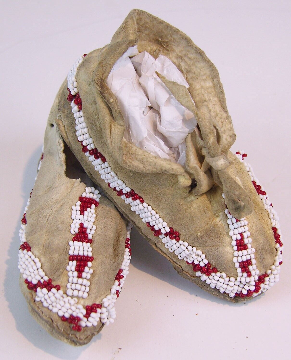 Title (ebay affiliate link): ca1910s PAIR NATIVE AMERICAN CHEYENNE INDIAN BEADED HIDE MOCCASINS CHILDS MOCS