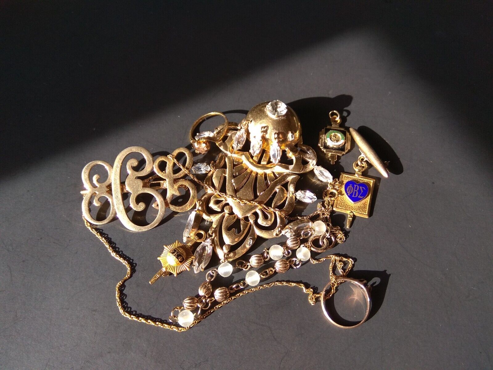 Title (ebay affiliate link): Victorian Antique yellow rose Gold Filled Plated Jewelry Lot pins ring bracelet