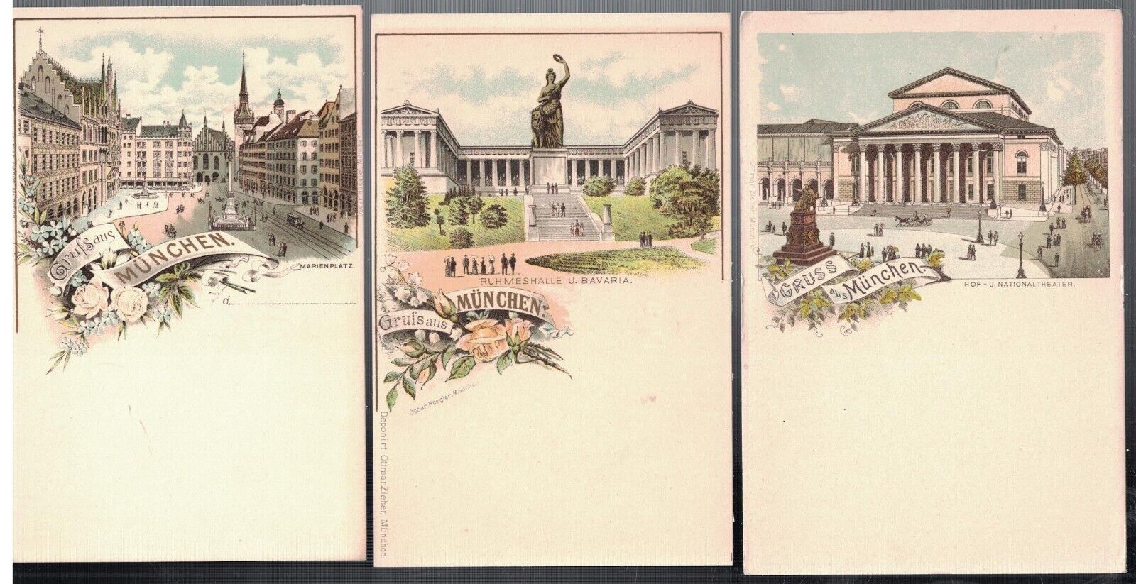 3 ANTIQUE 19001905 GRUSS AUS MUNCHEN GERMANY POSTCARD