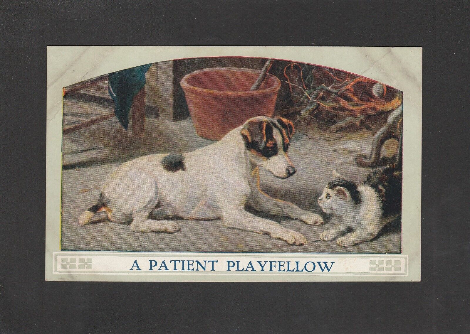 Title (ebay affiliate link): A Patient Playfellow Terrier Dog With A Cat Vintage Postcard