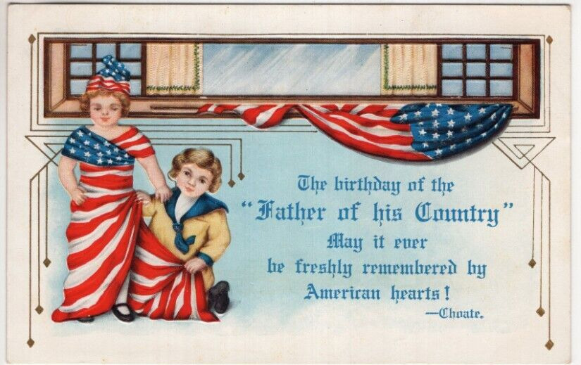 ANTIQUE PATRIOTIC Postcard 34THE BIRTHDAY OF THE FATHER OF HIS COUNTRY34