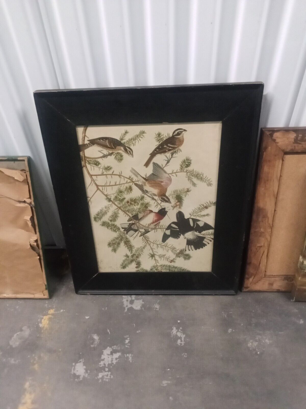 Antique Exotic Bird Painting on Canvas Wood Framed