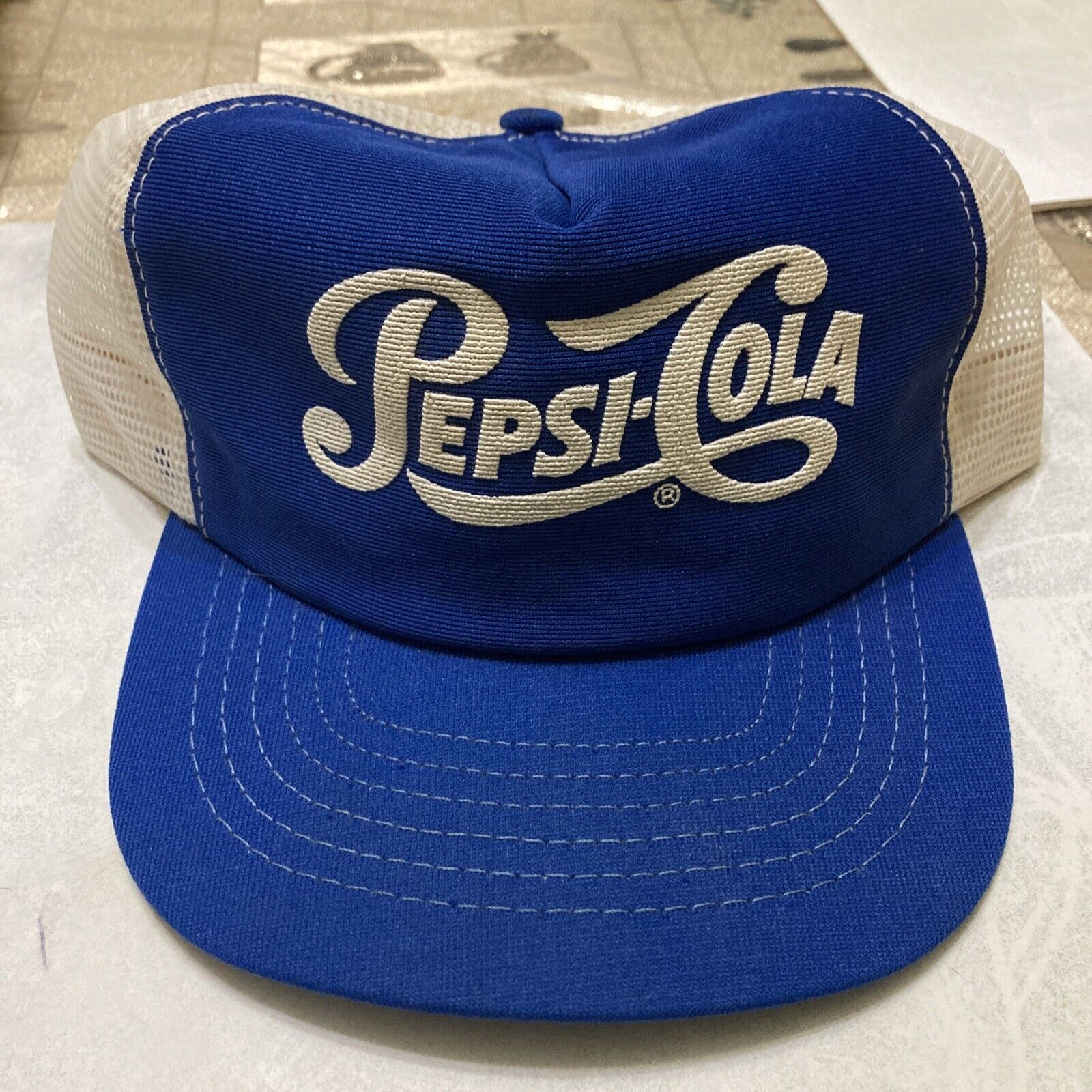 VINTAGE Pepsi Cola Mesh Script Logo Trucker Snapback Hat Blue White embroidere