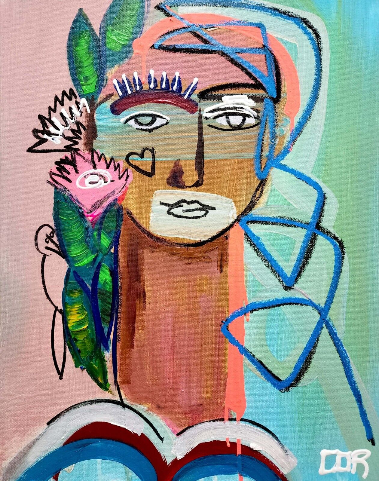 CORBELLIC EXPRESSIONISM 16X20 FLOWER CHILD WOMAN ART CANVAS COLLECTIBLE PORTRAIT