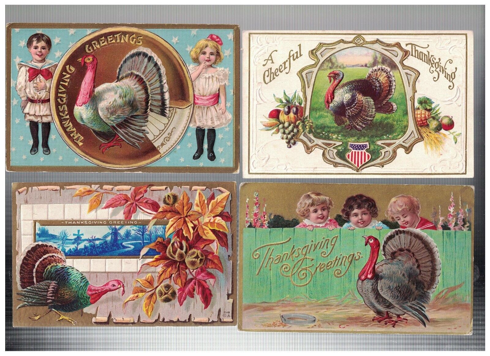 4 ANTIQUE THANKSGIVING POSTCARD TURKEY CHILDREN 1