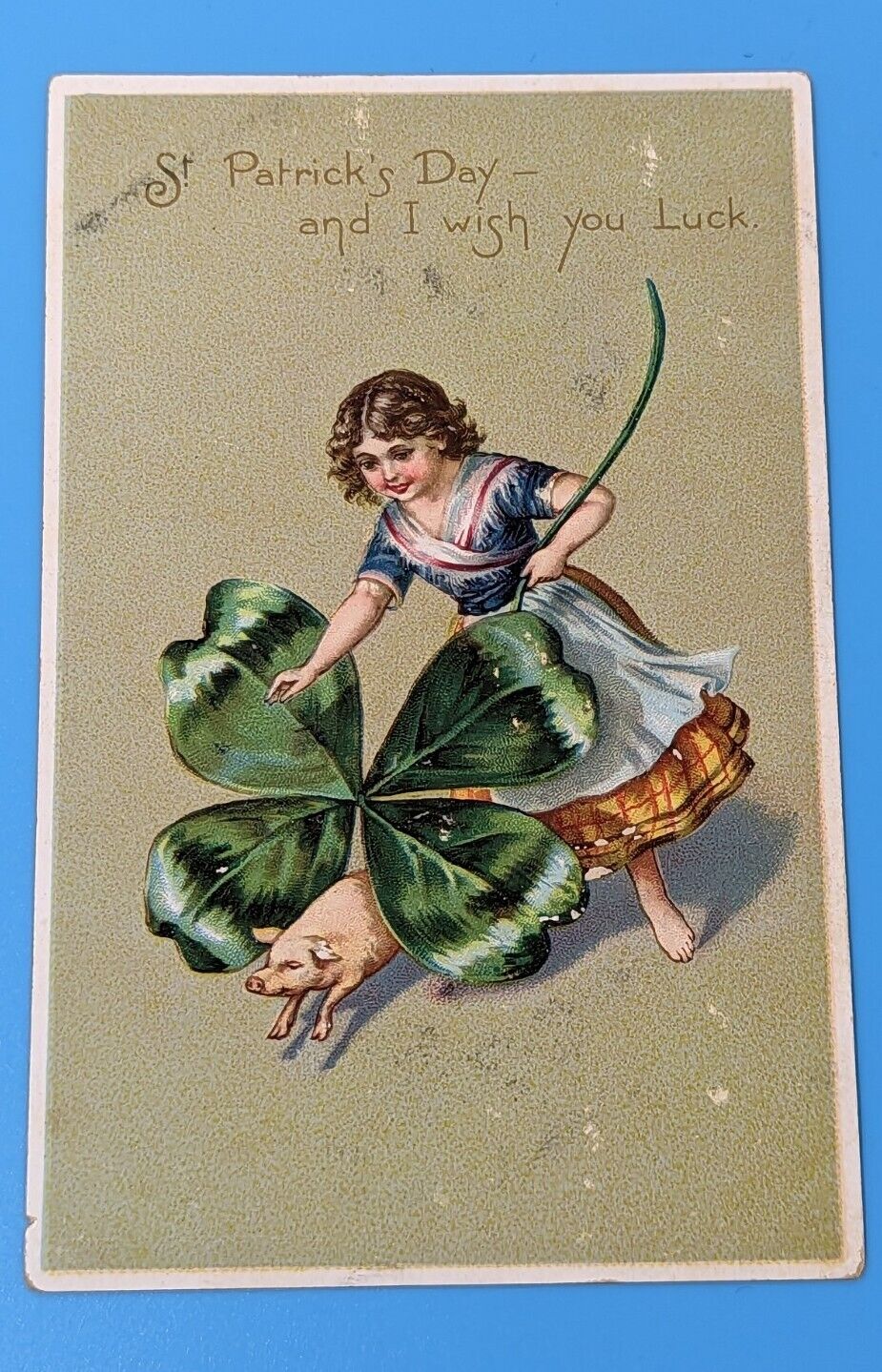 Title (ebay affiliate link): Antique Vintage Tucks St. Patricks Day Postcard Girl With Pig Clover