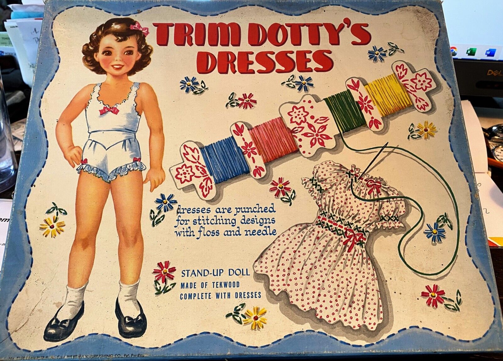 Vintage 1950s Trim Dottys Dresses Paper Doll and Clothes Original box Tekwood