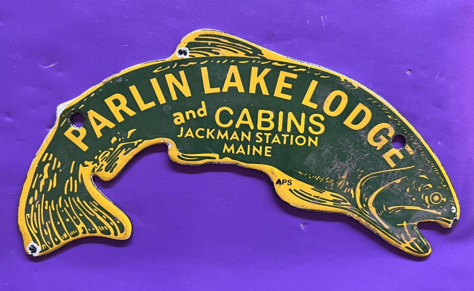 PARLIN LAKE LODGE AND CABINS FISHING CAMP VINTAGE PORCELAIN SIGN