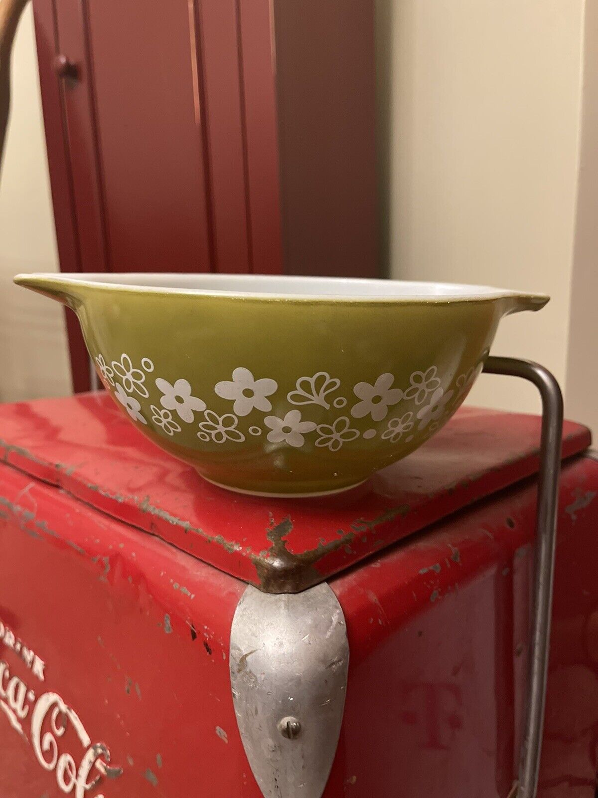 Vintage Pyrex Spring Blossom Green Crazy Daisy Cinderella Mixing Bowl 442